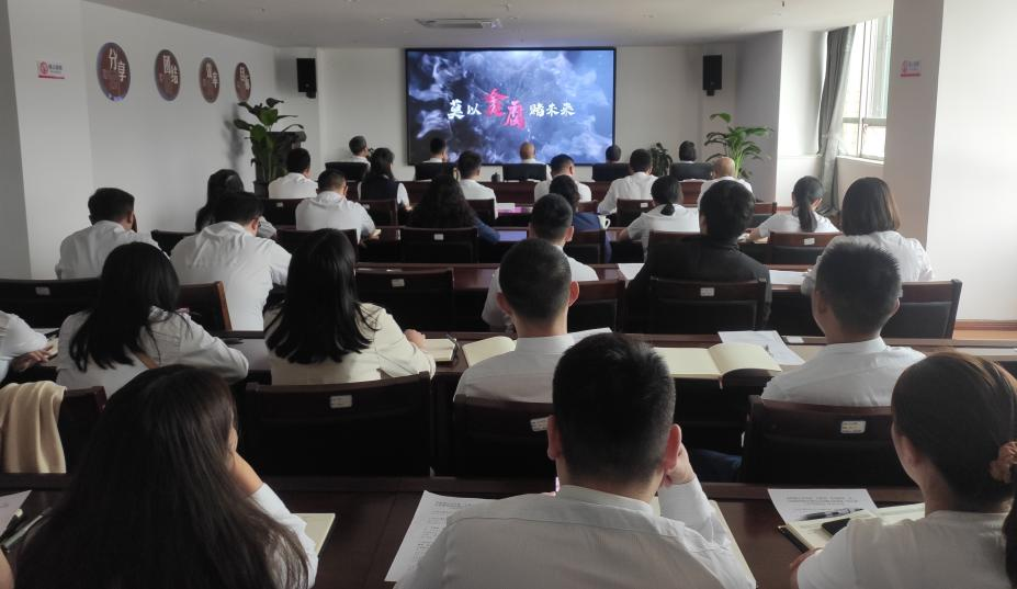 觀看一次警示教育片,敲廉潔警鐘。組織全體干部職工觀看《莫以貪腐賭未來(lái)》系列警示教育片,以案釋紀(jì)、以案說(shuō)法。讓大家深刻汲取案件教訓(xùn),舉一反三、防微杜漸,準(zhǔn)確把握好手中權(quán)利,時(shí)刻保持清醒,不觸碰紅線,不逾越底線,為全體干部職工敲響廉潔從業(yè)的警鐘。